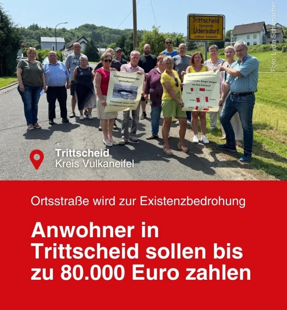 Wir wurden in dem kleinen 122 großen Seelendorf der Vulkaneifel herzlich empfangen. Eine kleine Tour durch das Ort hat uns die Betroffenheit der Bürger emotional und mit aller Härte gezeigt. Schilder mit Beitragssummen bis zu 80.000€ waren dort zusehen.